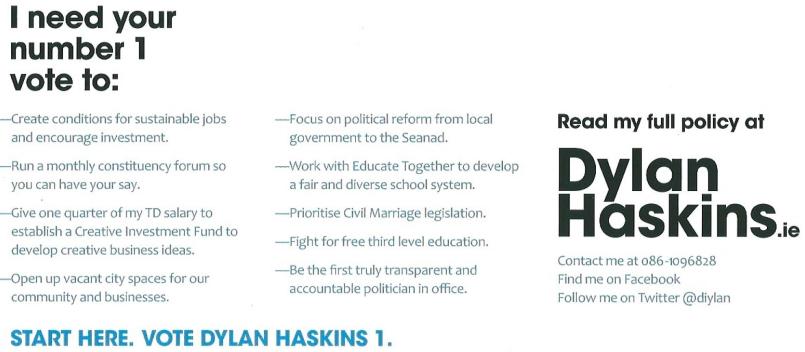 Flyer in post from Dylan Haskins -Independent -Dublin South East » haskinsflyer2