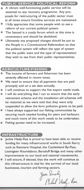 “In these serious times you need a serious candidate …..” – Michael Healy-Rae -Independent -Kerry South 2011 GE » mhr11c