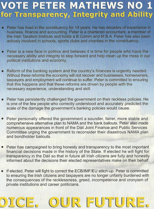 Leaflet from Peter Matthews -Fine Gael -Dublin South » pmatthews3