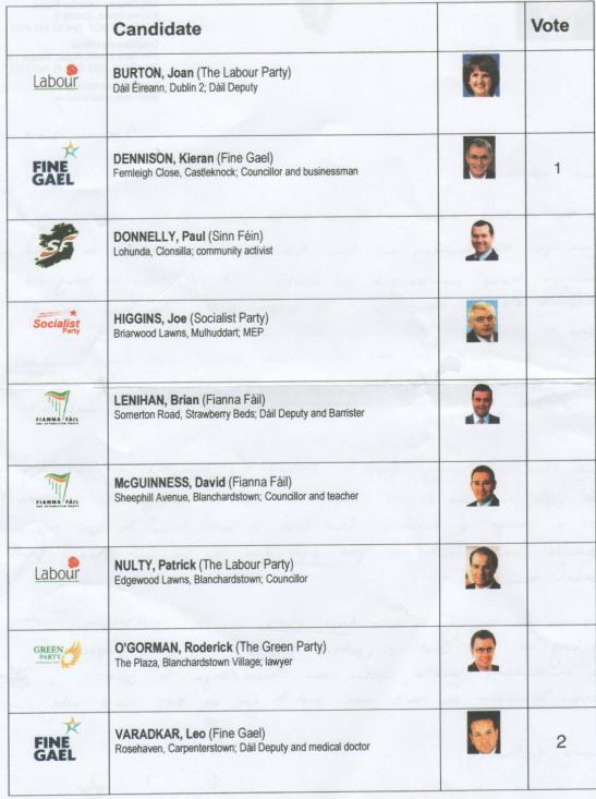 I live in this constituency and was surprised when I went into the polling station on Friday to note that there was an additional candidate on the actual ballot paper. Mr. Varadkar had omitted him from his mock ballot paper? I wonder what the motive behind this omission was.