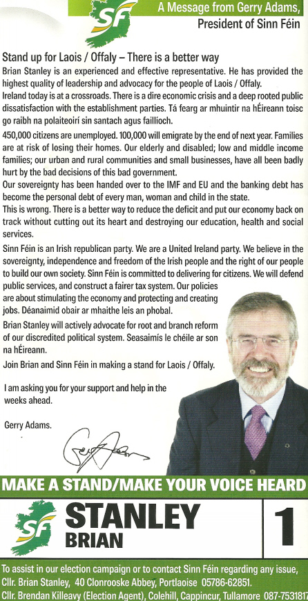 Leaflet from Brian Stanley -Sinn Fein -Laois Offaly -2011 GE » bstanley3