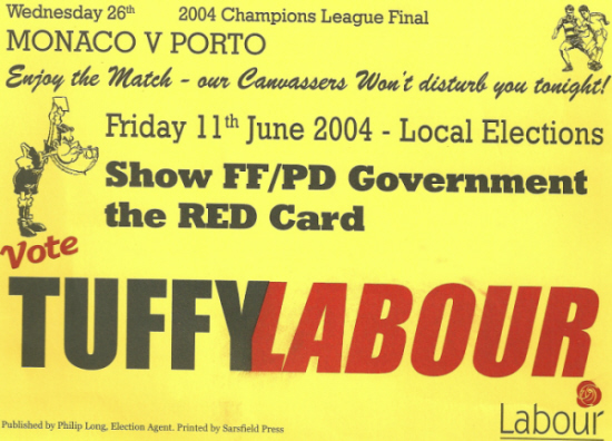 Eamon Tuffys 2004 Champions League Final Leaflet -Labour -2004 LE Lucan » tuffycl