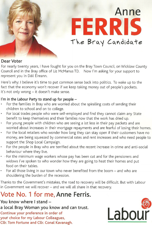 Leaflet from Anne Ferris -Labour -Wicklow -2011 General Election » aferris11b