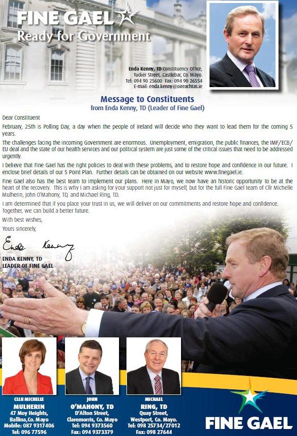 ‘Castlebar Leaflet’ from Enda Kenny -Fine Gael -Mayo -2011 GE » ekenny11a