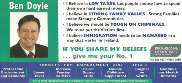 Flyer for Ben Doyle -Progressive Democrats- Dublin South Central-2007 GE » bdoyle07b