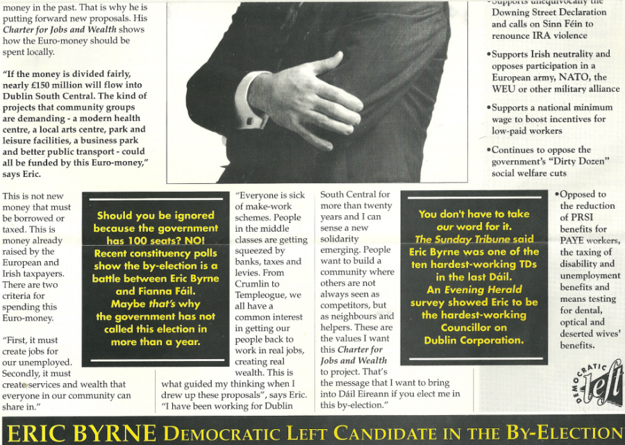“The last time they held a by-election Mayo got an Airport” -Eric Byrne -Democratic Left-1994 Dublin South Central by-election » ebyrne94b