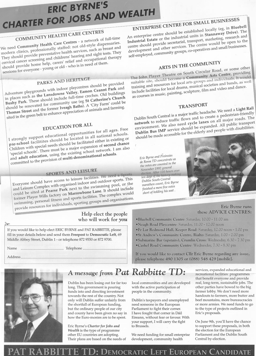 “The last time they held a by-election Mayo got an Airport” -Eric Byrne -Democratic Left-1994 Dublin South Central by-election » ebyrne94d
