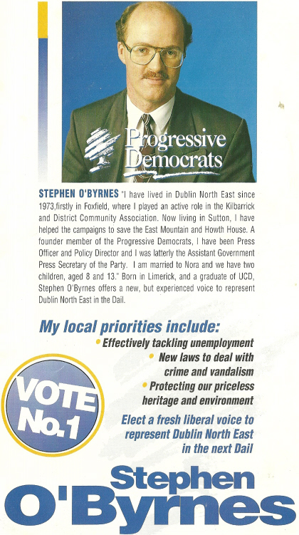 Stephen O’Byrnes -Progressive Democrats -Dublin North East 1992 GE » sobyrnes92a