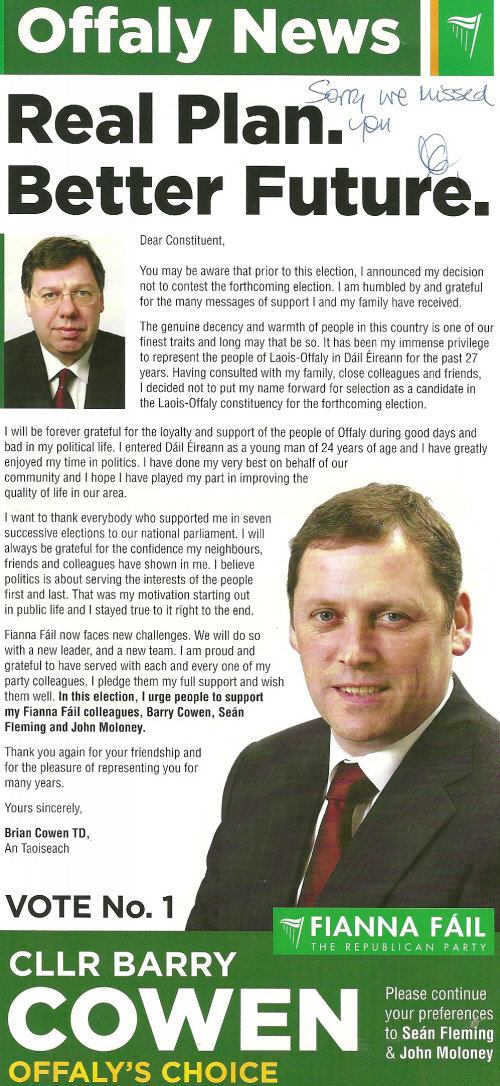 “Offaly News” -Barry Cowen with a message from Brian Cowen -2011 GE » offalynews1