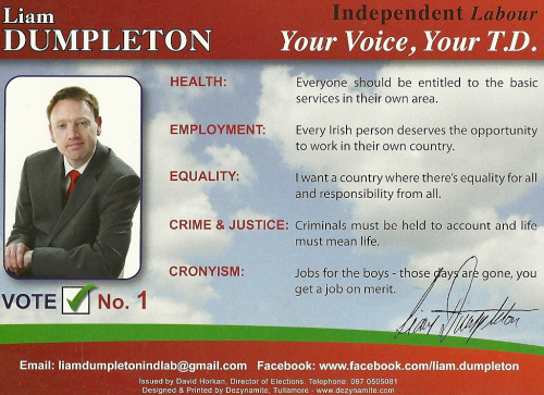 Flyer for Liam Dumpleton -Independent -Laois Offaly 2011 GE » ldumpletona