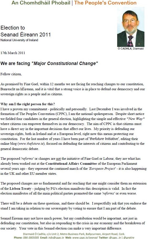 Letter from Diarmaid Ó Cadhla -The Peoples Convention (CPPC)- NUI Seanad 2011 » docadhlaseanad1