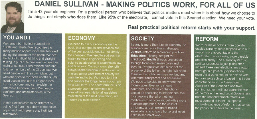 Flyer for Daniel Sullivan- NUI Seanad 2011 » dsullivan11b
