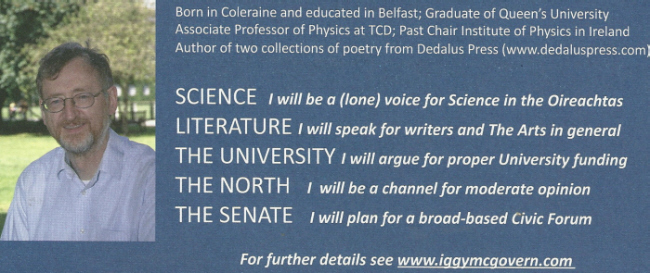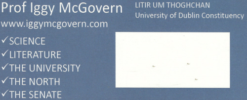 From the 2011 Seanad Elections a flyer from Iggy McGovern who is running for a seat on the Trinity panel.