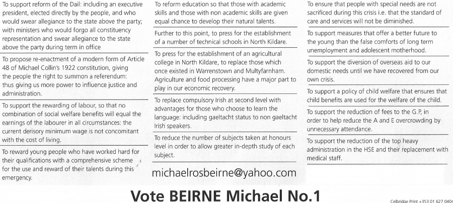 Flyer from Michael Beirne -Independent -Kildare North 2011 GE » mbeirne2