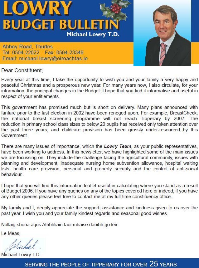 The 2005 “Lowry Budget Bulletin”-Michael Lowry -Tipperary North » lowrybudget06a