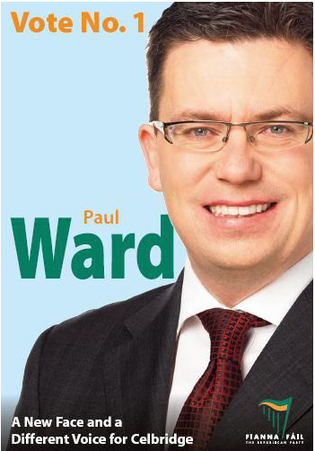 From the 2009 Local Elections a leaflet for Paul Ward who was running for Fianna Fail in the Celbridge for a seat on Kildare County Council. He polled 450 votes and failed to win a seat.