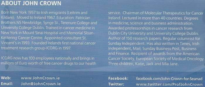 Leaflet from John Crown -2011 Seanad Election NUI » jcrown2