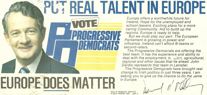 “Put Real Talent In Europe” -John Dardis -Progressive Democrats- 1989 Euro Elections Leinster » jdardis89b