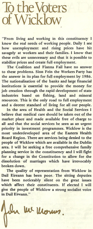 Leaflet from John McManus -Sinn Fein the Workers Party -1977 General Election Wicklow » jmcmanus77b
