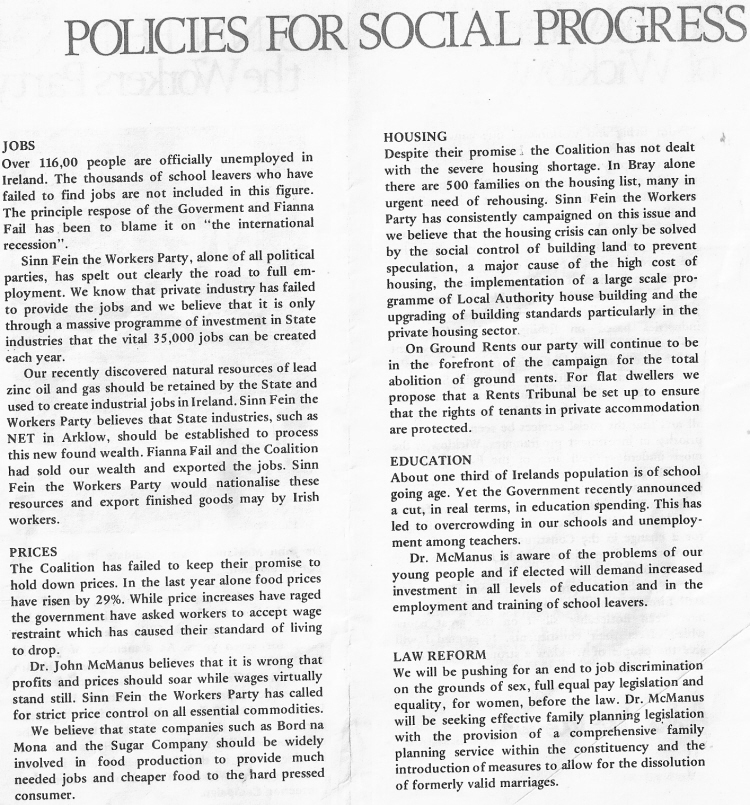 Leaflet from John McManus -Sinn Fein the Workers Party -1977 General Election Wicklow » jmcmanus77d