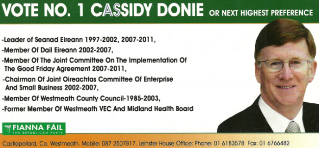 Flyer from Donie Cassidy -Fianna Fail -Labour Panel -2011 Seanad Elections » dcassidy11b