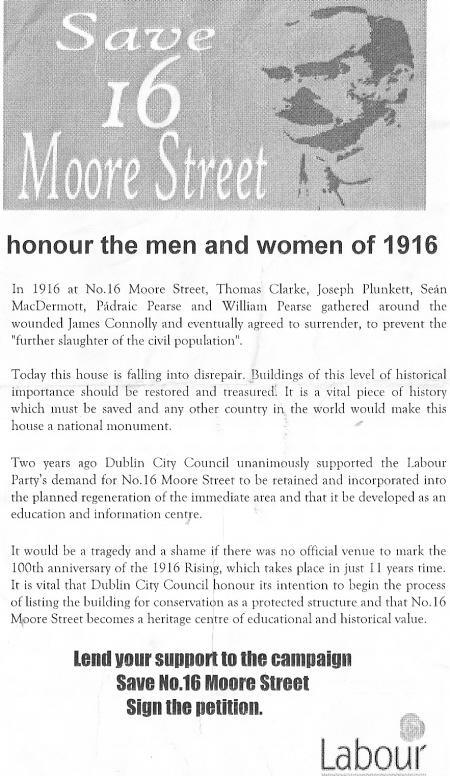 Save 16 Moore Street -“honour the men and women of 1916” -Labour Party April 24, 2011