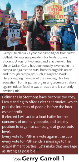 Leaflet from Gerry Carroll-People Before Profit- Belfast West – 2011 Assembly Elections » gcarroll2