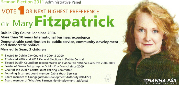 Flyer for Mary Fitzpatrick- Fianna Fail -Administrative Panel- 2011 Seanad Elections » maryfitzseanad2