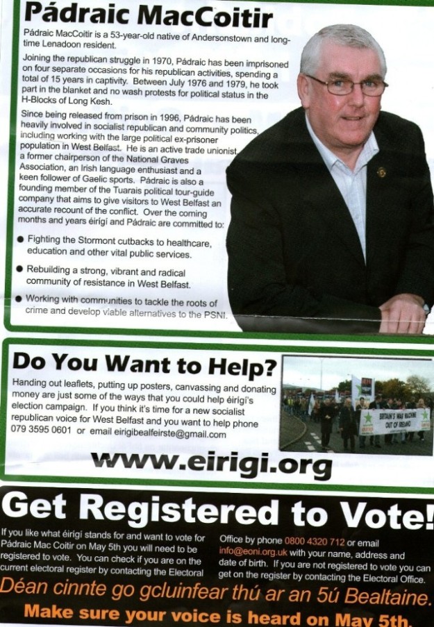 Pádraic Mac Coitir -éirígí -Upper Falls -2011 Local Elections » mccoitir22