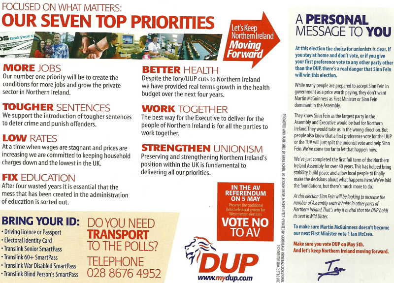 Leaflet for Ian McCrea -DUP -Mid Ulster- 2011 Assembly Elections » imccrea11b