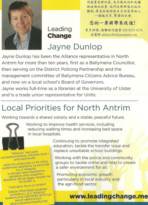 Leaflet from Jayne Dunlop- Alliance Party -North Antrim -2011 Assembly Elections » jdunlop4