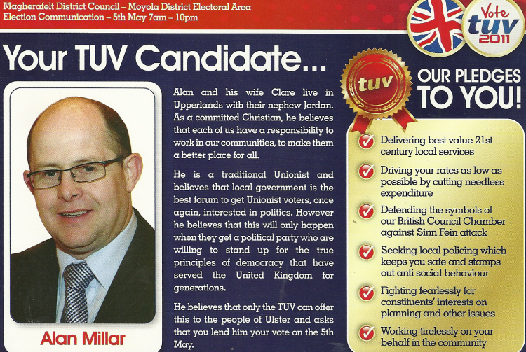 Leaflet from Alan Millar -TUV- Magherafelt Council -2011 Local Elections » millar2