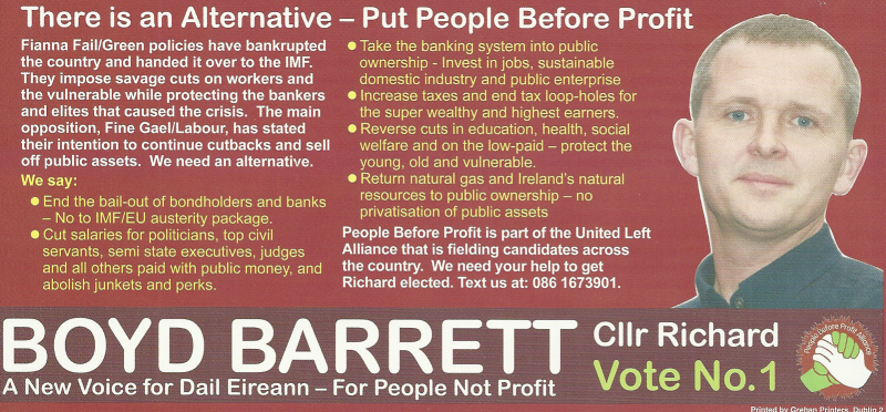 Leaflet from Richard Boyd Barrett -People Before Profit – 2011 General Election Dun Laoghaire » rbb11d