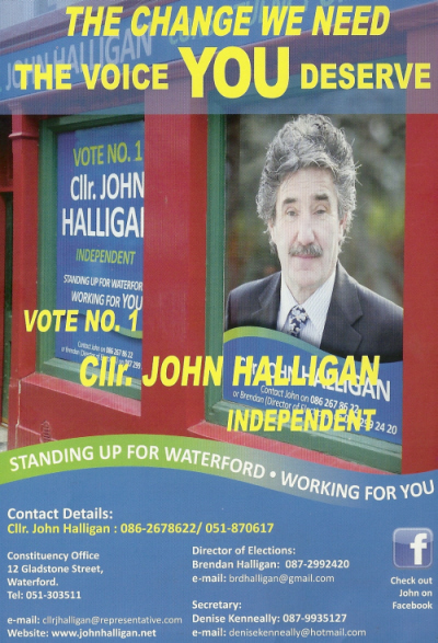 Leaflet from John Halligan- Independent -Waterford -2011 General Election » jhalligan11d