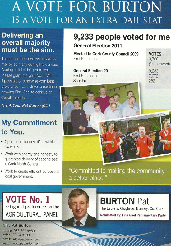 “9,233 Good Reasons to Vote For Me” -Pat Burton-Fine Gael- Agricultural Panel- 2011 Seanad Elections » patburton2