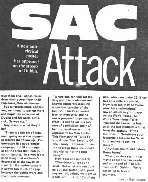 […] On then to a strange poster from SAC that was posted over Dublin in 1987 “THINK -Thought Kills All Known Clerics. Dead.” […]