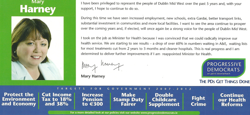 “The PDs Get Things Done” – Vote No 1 Mary Harney – Progressive Democrats -2007 General Election Dublin Mid West » mharney11b