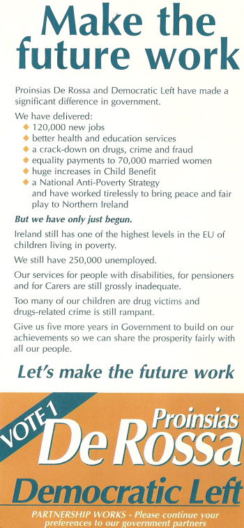 Leaflet from Proinsias DeRossa -Democratic Left -1997 General Election- Dublin North West » pderossa97c