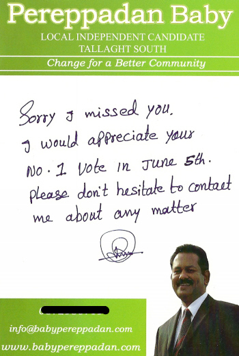 “Pereppadan Called” – Pereppadan Baby -Independent- Tallaght South 2009 Local Elections » Pereppadan2