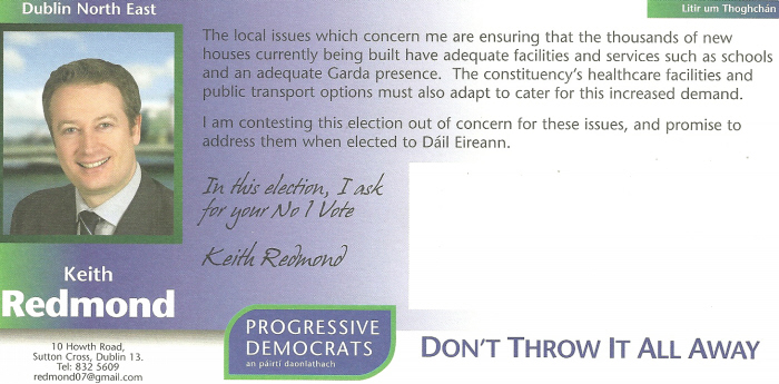 “Stop the Motorways -Say the Greens”-Keith Redmond- Progressive Democrats 2007 GE Dublin North East » kredmond07a