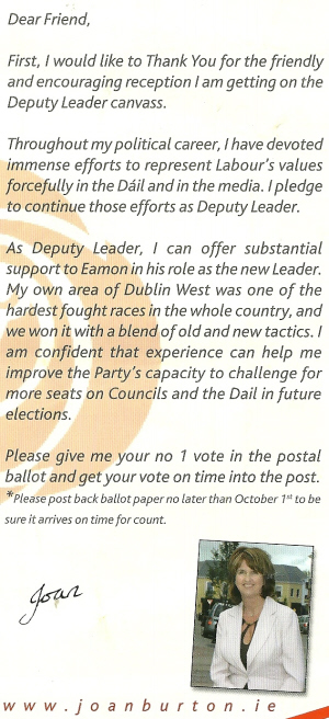 Labour Party Deputy Leader Election Leaflet from Joan Burton » jburtondl07b