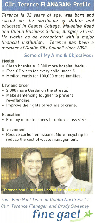 Flyer from Terence Flanagan- Fine Gael Dublin North East- 2007 General Election » tflanaghan07b