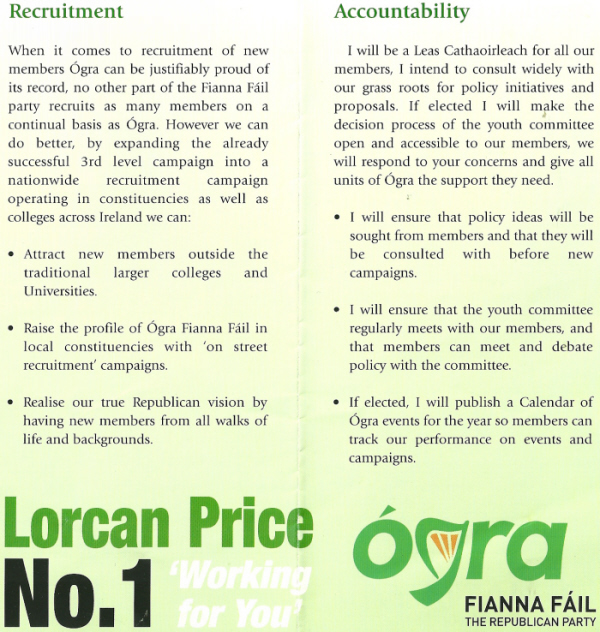 Leaflet from Lorcan Price – 2007 Election for Leas Cathaoirleach of Ógra Fianna Fail » lpriceogra3