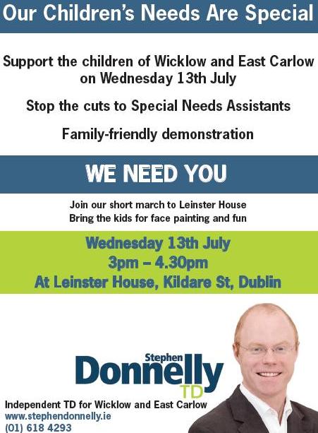 “Our Children’s Needs are Special” Flyer from Stephen Donnelly for the protest against cuts to SNAs Weds 13th July 2011 » sdonnellysna1