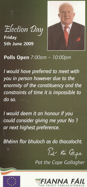 Flyer from Pat the Cope Gallagher -Fianna Fail -2009 European Elections Ireland North West » patthecope1