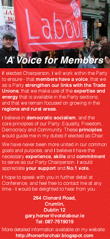 Leaflet from Gary Honer -Candidate for Chairperson Labour Annual Conference Galway 2010 » ghoner2