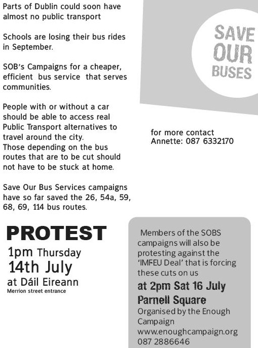 Leaflet for “Save Our Buses” Protest 1pm Thursday 14th July at Dáil Éireann » savourbuses2