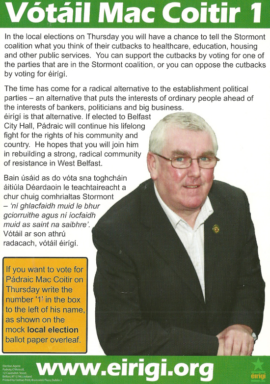 Flyer with sample ballot from Pádraic Mac Coitir -éirígí – Upper Falls 2011 Local Elections » pmccoitirl2a