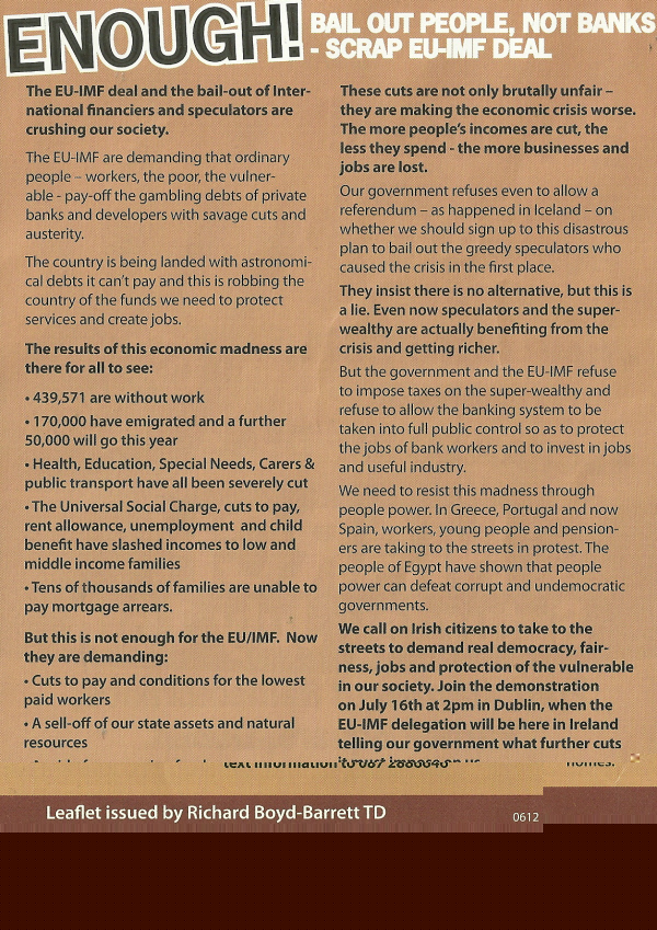 A Leaflet for The March organised by the Enough Campaign for the 16th July.