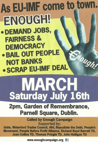 “As EU-IMF come to town…” – Leaflet for march on the 16th of July by The Enough Campaign » imfjuly16a